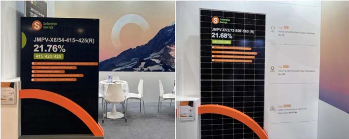 本屆香港展會(huì),陽(yáng)光能源展出了兩款高效率、高發(fā)電量的Giga系列產(chǎn)品,分別是182 N型TOPCon 54片單玻組件和182 P型PERC 72片雙玻組件。其中,182 N型TOPCon 54片單玻組件采用全黑設(shè)計(jì),量產(chǎn)效率可達(dá)到21.76%,兼具美觀和優(yōu)異的發(fā)電性能,被普遍應(yīng)用于高端住宅等應(yīng)用場(chǎng)景,獲得眾多現(xiàn)場(chǎng)觀眾的駐足了解。