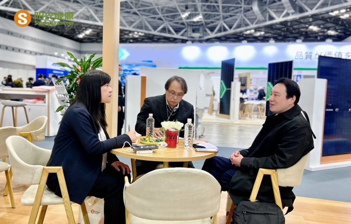 本次展會,陽光能源集中展示了公司的前沿技術(shù)和先進(jìn)的光伏組件產(chǎn)品,5 款展品高度契合以小型項目為主導(dǎo)的日本光伏市場需求。其中一款 Giga-N 系列 48 片輕質(zhì)雙玻戶用光伏組件,采用了 N型TOPCon 電池技術(shù)搭載 210R 矩形硅片,極大地提升了發(fā)電效率,組件轉(zhuǎn)換效率提升到 23.0% ,即便在弱光環(huán)境下也能高效運(yùn)作;在外觀設(shè)計方面,打造更加簡約時尚的全黑外觀,適用于各類建筑風(fēng)格。