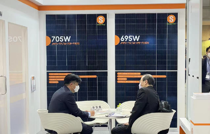 其中旗艦產(chǎn)品210N型HJT單玻半片組件功率最高可達(dá)705W,效率更是突破23.02%,可為日本市場(chǎng)帶來(lái)更加高效、高能的全新體驗(yàn),並擁有5-10倍的IEC標(biāo)準(zhǔn)檢測(cè),以及優(yōu)異的抗PID性能;210N型TOPCON單玻半片組件采用66片設(shè)計(jì),功率達(dá)到695W,作為成熟市場(chǎng)的優(yōu)質(zhì)之選,可提供12年質(zhì)量保證和30年發(fā)電效率保證。除此之外,其他4 款差異化的產(chǎn)品也獲得了眾多觀眾的青睞。
